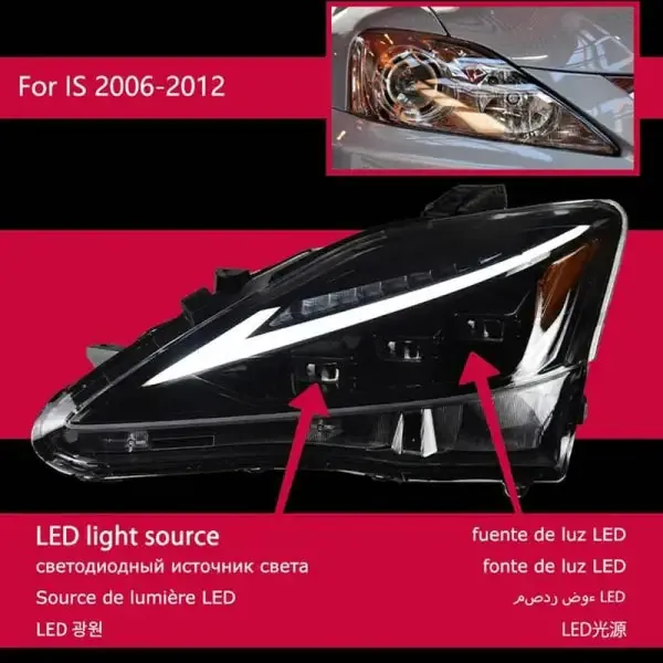 LED Headlight Head lamp light DRL Signal Animation Projector Lens Compatible With Lexus IS250 2006-2012 IS300