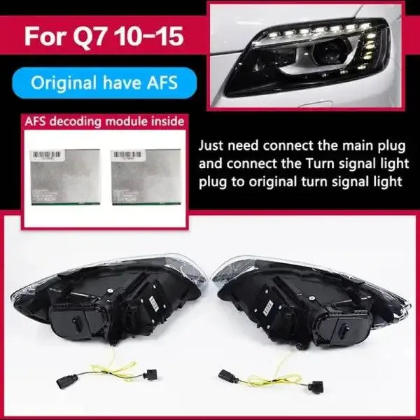 LED Headlight Projector Lens DRL Animation Compatible With Audi Q7 2006-2015