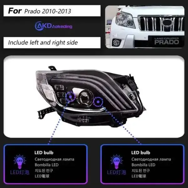 LED Headlight Projector Lens Front DRL Signal Automotive Compatible With Toyota Prado 2010-2013