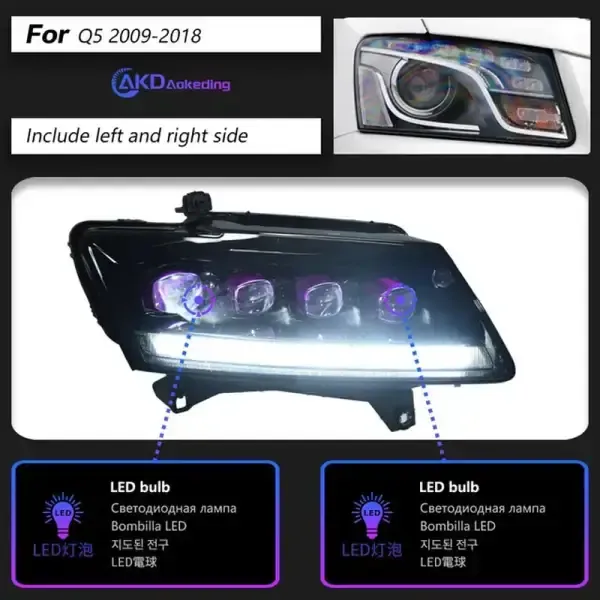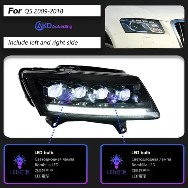 LED Headlight Projector Lens Signal DRL Head Lamp Automotive Compatible With Audi Q5 2009-2018