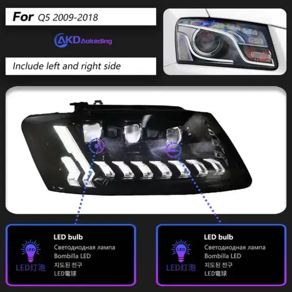 LED Headlight Projector Lens Signal DRL Head Lamp Light Automotive Compatible With Audi Q5 2009-2018