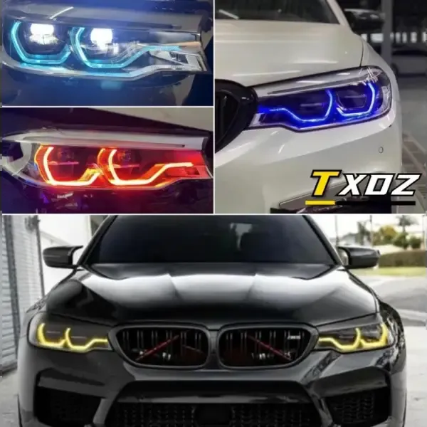 COMPATIBLE WITH BMW 5 SERIES M5 F90 G30 540 G38 2018-2020 LED STYLE LED STYLE HEADLIGHT DRL DAYTIME RUNNING LIGHT ANGEL EYE LED MODULE RGBW COLOR CSL STYLE AO-RGBW-003 EUROPE