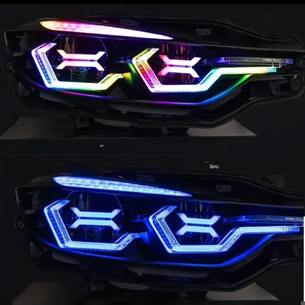 COMPATIBLE WITH BMW 3 SERIES F30 F34 F35 2013-2018 M3 M4 F32 2013-2019 F80 F82 5 SERIES G30 M5 2017-2019 LED STYLE HEADLIGHT DRL DAYTIME RUNNING LIGHT ICONIC ANGEL EYE LED 5D GEN 3 SRGBA