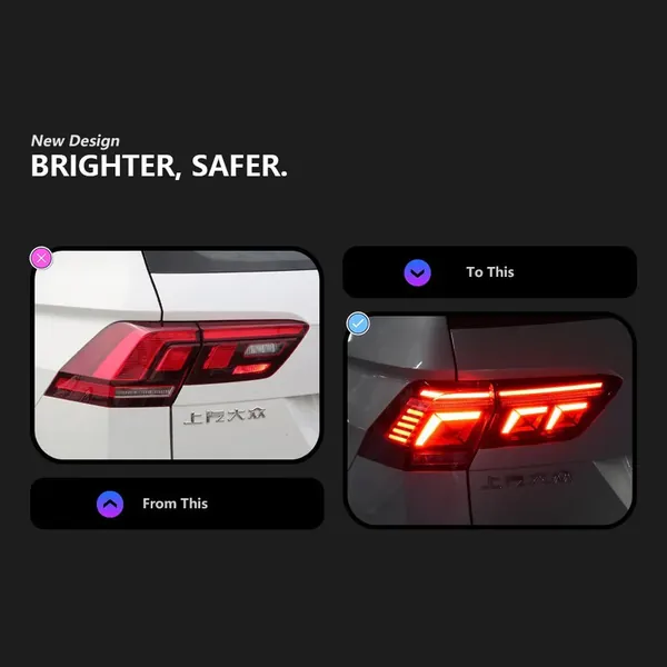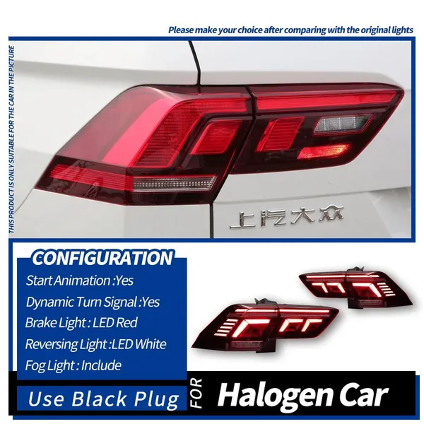 COMPATIBLE WITH VW VOLKSWAGEN TIGUAN LED TAIL LIGHT 2017-2022 CAR REAR UPGRADED TAIL LIGHT LAMP XENON TAILLIGHT RETROFIT UPGRADE MODIFIED LED DRL HID BRAKE LIGHT, WARNING LIGHT FOR HELOGN CAR