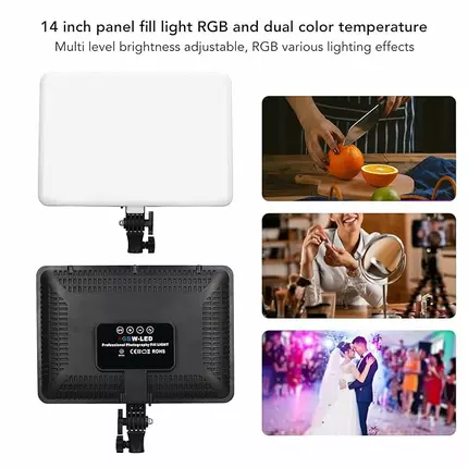 Features: 1. RGB LED Video Lighting 0-360° Full Color, 3000K-6500K Color Temperature Control, Dimmable Brightness 0% To 100% . 2With 20 Kinds Of Static And 2 Kinds Of Dynamic Lighting Modes Available, Provides Different Colors To Meet Different Shooting Scenes. Suitable For Video Conferencing, Photoshoot, Remote Work, Youtube Video, Live Streaming. 2. LED Color Rendering Index ≥80+, Provide More True Color Reproduction . There Will Be No Ripples And Stroboscopic Phenomenon Occurred When Shooting, Especially Suitable For Creative Shooting, Live Broadcast, Camping, Selfie, Still Life, Micro Film, Video Shooting And Other Purposes. 3.Remote Dimming Mode,The Attached Wireless Remote Control Can Adjust The Luminous Intensity. The Maximum Remote Control Distance Can Reach 15 Meters Specifications: Color Temperature: 3000K-6500K Brightness: 200000MCD Lumens: 2000LM Brightness Adjustment: 10%-100>#br###Lighting Mode: 20 Kinds Of Static And 2 Kinds Of Dynamic Led Color Rendering Index: 80+ Number Of Lamp Beads: 352 Product Power: 50W Input Voltage: 100V-240V Working Voltage: 24V-3A Light Size: 36×25×4.5cm Package Includes : A: 1 X 14 Inch RGBW Flatbed Photography Light 1 X EU Plug +US Adapter Charger 1 X Wireless Remote Controller STAND NOT INCLUDED