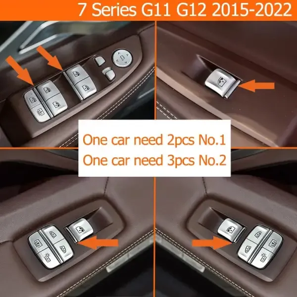 COMPATIBLE WITH BMW 7 SERIES G11 G12 2015-2022 X5 F15 X6 F16 2014-2018 CAR LEFT RIGHT DOOR WINDOW LIFT SWITCH BUTTON COVER CHROME STRIP TRIM SHORT NO 2 51417406252