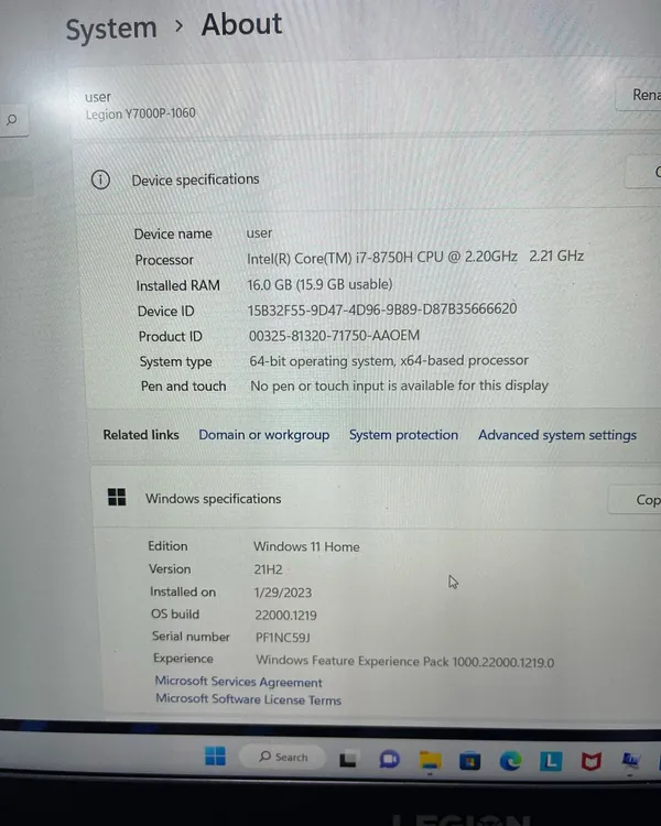 Legion Y7000p-1060 Gaming Laptop Core i7 16gb Ram 1TB Hard Drive 8th Gen 6GB Dedicated Graphics