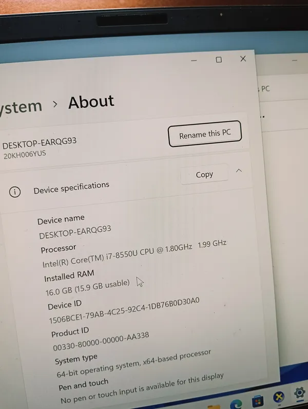 Lenovo 20KH006YUS Intel Core i7 (2.0GHz) 8th Gen 512GB SSD 16GB Ram Windows 11 Pro