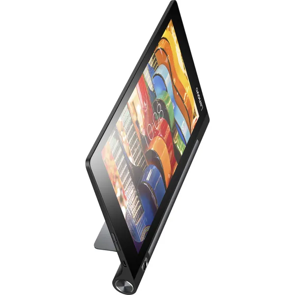 The Lenovo 8" Yoga Tab 3 16GB Tablet is powered by a 1.3 GHz ARM Cortex-A7 quad-core processor and 1GB of LPDDR3 memory to deliver performance for web browsing, watching online videos, and more. The Yoga Tab 3 comes equipped with 16GB of internal storage along with a microSDXC card slot that can accept memory cards up to 128GB in capacity to expand its digital storage space. For visuals, Lenovo's Yoga Tab 3 uses an Adreno 304 graphics chip to drive its 8" display, which has a resolution of 1280 x 800 and a brightness level of 400 cd/m2. There's also an integrated kickstand that props up the tablet vertically, so you can enjoy movies and TV shows without using an optional stand or case.