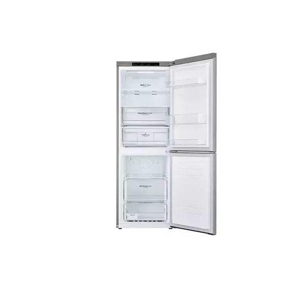 LG Refrigerator Bottom Freezer 2 Doors 335Ltr -Silver LINEARCooling™ DoorCooling⁺™ Moist Balance Crisper™ Large Capacity Square Pocket Handle / Reversible Door / Zero Clearance Smart Diagnosis™ LINEARCooling™ Seals in Farm Freshness Longer Lock in the flavor of fresh for longer with the temperature precision of LINEARCooling™. DoorCooling⁺™ Delivers Freshness Evenly & Faster Food stays fresh and drinks get ice cold on any shelf with even and faster cooling performance. Fresh 0 Zone Save Defrosting Time The Special drawer allows you to better preserve foods such as meat and fish for cooking without having to frost & defrost them. Moist Balance Crisper™ Lock in the Moisture for the Taste of Crisp A lattice-patterned box cover keeps fruits and veggies crisp by maintaining the ideal moisture level. Large Capacity Large Capacity in Compact Size Enjoy your groceries inside a fridge that doesn't crowd your kitchen. Smart Diagnosis™ Keep You a Step Ahead Troubleshoots minor issues and updates maintenance alerts so you can avoid the hassle of service calls. BASIC SPECIFICATION Dispenser No R room 1 Drawer+2 Shelf Room F 3 Drawer Color PS3