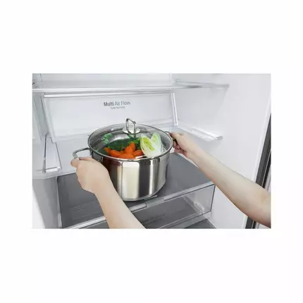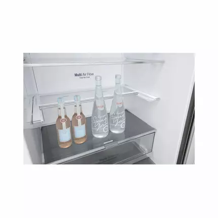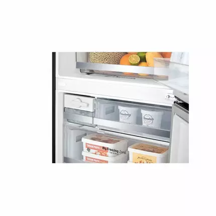 LG Refrigerator 462L Bottom Freezer GC-B569NQCM NatureFRESH™ Door Cooling+™ FRESHBalancer™ FRESHConverter™ Smart Inverter Compressor NatureFRESH™ Delight Your Senses with NatureFRESH™ Enjoy fresh food and produce. Delight your senses for a joyful eating experience. 24 Hours Even Cooling Precise Temperature Control. DoorCooling+™ Up to 32%* Faster & Even Cooling Everywhere The air vents located at the front of the fridge help maintain temperature to keep your food items fresh. FRESHBalancer™ Optimizing Humidity The FRESHBalancer™ securely retains moisture, while the moving controllers maintain the optimal humidity for fruits and vegetables, depending on the mode you set. FRESHConverter™ Choose Optimum Temperature by Food Type FRESHConverter™ maintains optimal condition of your meat, fish and vegetables respectively. Energy Saving Smart Inverter Compressor LG's intelligent Smart Inverter Compressor is an energy expert, adjusting cooling power based on quantities of stored food and the inside and outside temperature of the refrigerator. The Smart Inverter Compressor also generates less noise, making your kitchen a quiet, relaxing place to enjoy. Backed by a 10 years warranty! SUMMARY CAPACITY: 462(L) DIMENSION (W X H X D, MM): 700 x 1850 x 700 mm TYPE OF MODEL: Bottom Freezer Refrigerators FEATURE: Smart Inverter Compressor CAPACITY(ℓ) Storage - Total 462 Storage - Freezer 133 Storage - Refrigerator 329 WEIGHT(KG) Net/Packing: 86/95 DIMENSION(MM) Height (Net) - to Top of Case (B)1850 Depth (Net) - without door (C)595 Depth (Net) - without handle (D) 700 Depth (Net) - including door & handle (E) 700 Width (Net) 700 Width x Height x Depth - Product 700 x 1850 x 700 Width x Height x Depth - Packing 747 x 1934 x 772 STUFFING Q 20ft / 40ft / 40ft HC, Truck21/48/62 GENERAL FEATURES Display - Exterial LED Yes Temp. control - Digital Sensors (RT Sensor)Yes Temp. control - Express Freezing Yes Temp. control - Child Lock Yes Temp. control - Door alarm Yes Temp. control - Express FreezeYes Temp. control - Fridge Yes Temp. function - Door Cooling Yes Temp. function - Express Cool Yes Cooling System No Frost Sound Power(dB) 41 Energy Class 3 Star Energy Consumption (kWh/year) 439 Refrigerant R600a Inverter Compressor Yes Star Rating**** Climate ClassT Finish (Door) - STS/ Brushed Steel/ Shine Steel New Platinum Silver/ Super White Black & etc. (Option) PCM-Matte Black Finish (Case) - PET/ PCM (Option) PCM(NORMAL) Handle Type - Material ABS Handle Type - Size Short Handle Type - Type (Name of handles and Easy open) Pocket Handle Smart Diagnosis Yes Bio Shield (gasket)Yes Reversible door Yes REFRIGERATOR COMPARTMENT Lamp Top LED Multi-Air Flow Yes Shelf - Tempered Glass Yes (1) Shelf - Folding Shelf Yes (1) Door basket - Transparent Yes (4 Half+ 2 Full) Door basket - 2ℓBottle Storage Yes Matallic Decoration - Shelf Yes Matallic Decoration - Drawer Yes Fresh Zone (Meat Tray)Yes Veg Box Cover T/V - Tempered glass Yes (2) Veg Box Cover T/V - Moist Balance Crisper(Plastic) Yes (1) Vegetable Box - Separate Yes (2) Vegetable Box - Fruit & Vegetables Yes Deodorizer Yes Egg Tray Yes FREEZER COMPARTMENT Multi-Air Flow YesIce maker - Twist Ice TrayYes Metallic Decoration - Drawer Yes Shelf - Tempered glass Yes (2) Drawer - Transparent Yes (3) WIFI WIFI: Yes