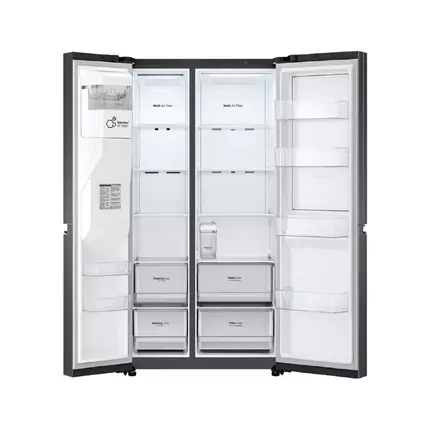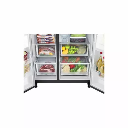 LG Refrigerator 635L Door in Door Black GC-J257SQRS Capacity: 635L Door-in-Door™ LinearCooling™ DoorCooling+™ UVnano™ UltraSleek Door Large Capacit Door-in-Door™ Quick & Easy Access to Your Favorites Door-in-Door™ allows you to easily get your favorite foods with concealed opening button. LinearCooling™ Seals in Farm Freshness Longer LinearCooling™ reduces temperature fluctuations, locking in the flavor of fresh for up to 7 days. DoorCooling+™ Delivers Freshness Evenly & Faster Drinks are colder and food stays fresher with the even and faster performance of DoorCooling+™. UVnano™ Refresh Your Dispenser Nozzle Every Day Automatically reduce *99.99% of bacteria from the water nozzle with UV light. LG ThinQ™ Smart Control, Smart Life The LG ThinQ™ app allows you to easily connect with your refrigerator in a way you never could before. Turn on 'Express Freeze' with just the tap of a button. Keep Fresher, Cool Faster, Save More LG Inverter Linear Compressor™ keeps food at the peak of freshness with less energy consumed. Technical Specifications: SUMMARY CAPACITY: 674L DIMENSION (W X H X D, MM): 913 x 1790 x 735 TYPE OF MODEL: Inverter Linear Compressor FEATURE: Door-in-Door Refrigerators® CAPACITY(ℓ) ISO Gross (New) - Total 674 ISO Gross (New) - Freezer 424 ISO Gross (New) - Refrigerator 250 ISO Storage (Old Reg / New Reg) - Total 635 ISO Storage (Old Reg / New Reg) - Freezer 190 ISO Storage (Old Reg / New Reg) - Refrigerator 416 WEIGHT(KG) Net: 123 Gross: 133 DIMENSION(MM) Height (Net) to Top of Hinge (A) 1790 Height (Net) to Top of Case (B) 1750 Depth (Net) - without door (C) 620 Depth (Net) - without handle (D) 735 Depth (Net) - including door & handle (E) 735 Width x Height x Depth - Product: 913 x 1790 x 735 Width x Height x Depth - Packing: 913 x 1891 x 770 STUFFING Q'TY 20ft / 40ft / 40ft HC, Truck14 / 36 /36 GENERAL FEATURES Finish (Door)MC Handle Type - Material Plastic Handle Type - Contour / Flat Door Flat Handle Type - Type (Name of handles and Easy open)