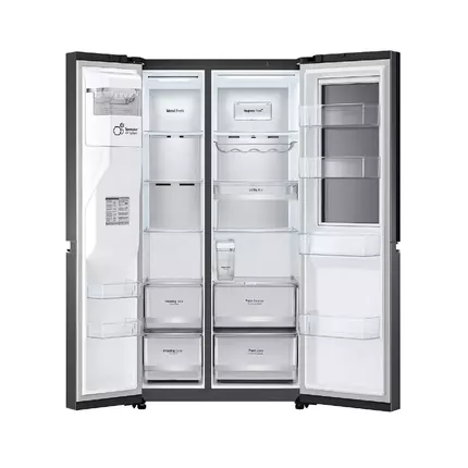 LG Refrigerator 635L InstaView Black GC-X257CQES Capacity: 635L Inverter Linear Compressor InstaView Door-in-Door™ ThinQ (Wi-fi) Door Cooling+™ Water and Ice Dispenser with UV Nano Hygiene Fresh+™ Energy Saving with Inverter Linear Compressor LG's Inverter Linear Compressor has revolutionized the core of the refrigerator, providing high energy savings, top-rate durability and optimal temperature control to keeps food fresher longer. InstaView Door-in-Door™ InstaView Door-in-Door™ has a sleek mirrored glass panel that illuminates with two quick knocks, allowing you to see inside the easy access compartment without ever opening the door, reducing cold air loss to help keep food fresher longer. UV Nano Self-Cleaning Water Dispenser The UV Nano feature cleans inside of the water nozzle automatically for 10 minutes every hour, or can be activated manually. LG ThinQ With LG ThinQ, you can control and diagnose your refrigerator by your smart phone even when you're not at home. Easily set the refrigerator temperature, control Express Freeze, and diagnose your refrigerator with simple touch on your smart phone. DoorCooling+™ Faster & Even Cooling Everywhere DoorCooling+™ and Multi Air Flow provide cold air where it is easily lost, keeping your food fresher. Easy Access to your Favorites The innovative transparent window on the InstaView Door-in-Door™ enables you to check on the items stored inside without opening the door by simple two knocks. Easy to find and access to your favorites! Less Cold Air Loss up to 41%* Because LG InstaView Door-in-Door™ allows you to see inside without opening the door, you can reduce cold air loss. See inside without losing your cool! *Tested by Intertek. Based on Internal test validated by Intertek. Technical Specifications: HIGHLIGHTS Capacity (Litre) 635 Inverter Linear Compressor Yes Cooling Technology Door Cooling+™Exterior Finish Matt Black Hygiene Fresh+™ Yes LG ThinQ Yes Exterior Display Yes InstavIew Door-in-Door™ Yes EXTERIOR Color Matt Black REFRIGERATOR SPECIFICATIONS Sensors Yes Child Lock Yes Express Freezing Yes Tempered Glass Shelves 3 Drawers 3 Interior Lamp LED Deodorizer Yes Door Basket 4 FREEZER SPECIFICATIONS Icemaker Type Door - Twist ice Maker Tempered Glass Shelves 4 Drawers 2 Interior Lamp LED Door Basket 2 DIMENSIONS Height (mm) 1790 Width (mm) 913 Depth (mm) 735