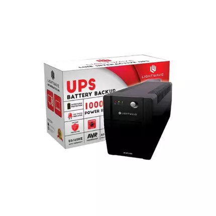The Lightwave Back-Up Uninterrupted Power Supply (UPS) 1000VA is a compact and reliable solution designed to offer essential backup power and protection for electronic devices. Ideal for home offices and small business setups, this UPS ensures that your critical equipment remains operational during power outages and safeguards it from power fluctuations and surges. With a power capacity of 1000va, the Lightwave UPS provides adequate backup power to keep essential devices, such as desktop computers, monitors, and networking equipment, running during brief power interruptions. This capacity ensures that users have sufficient time to save their work and perform a safe shutdown of their devices, preventing data loss and minimizing the risk of hardware damage. The UPS’s automatic voltage regulation (AVR) feature maintains a stable output voltage, protecting connected devices from potentially damaging voltage sags and surges. The Lightwave 1000VA UPS is equipped with multiple outlets, offering flexibility in connecting various devices. This allows users to simultaneously protect multiple pieces of equipment with a single UPS unit. Additionally, the built-in surge protection helps shield devices from unexpected voltage spikes that could cause harm or disrupt performance. The user-friendly design of the Lightwave UPS includes a straightforward LED indicator panel that provides real-time information about the UPS’s operational status. Key indicators include power on, battery mode, and fault conditions, enabling users to quickly assess the UPS’s status and take appropriate action if needed. The UPS is powered by a maintenance-free, sealed lead-acid battery designed for reliable performance and long service life. During power outages, this battery provides sufficient backup time to ensure that users can complete their tasks and perform a controlled shutdown. The intelligent battery management system optimizes battery performance and extends its lifespan, ensuring the UPS remains effective over time. The Lightwave 1000VA UPS features a sleek, compact design that integrates seamlessly into any workspace. Its compact footprint ensures that it occupies minimal space, while its quiet operation ensures a peaceful working environment without added noise. Overall, the Lightwave Back-Up Uninterrupted Power Supply 1000VA is a dependable and efficient solution for maintaining the continuity of essential electronic devices during power disturbances. Its combination of adequate power capacity, automatic voltage regulation, surge protection, and user-friendly features makes it an excellent choice for home and small office environments. Features: LED display High/Low voltage protection Overload / short protection Intelligent battery management Auto charge function Specifications: Brand: Lightwave Model: 1000VA Type: UPS Capacity: 1000VA Color: Black Nominal Input Voltage – 230V Input Frequency – 45 – 65 Hz Input Connections – IEC-320 C14 Cord Length – 1.16 meters Input voltage range for main operations – 140 – 300V Maximum Input Current – 7A Input Breaker Capacity – 7.0 A Nominal Output Voltage – 230V Efficiency at Full Load – 97.0% Output Frequency (sync to mains) – 50/60Hz +/- 3 Hz Topology – Line Interactive Waveform Type – Stepped approximation to a sinewave Output Connections – (4) IEC 320 C13 (Battery Backup) Battery Type: Sealed lead-acid battery, maintenance-free Battery Runtime: Up to 30 minutes depending on the connected load Recharge Time: 4-6 hours for a full recharge Dimensions: 320 x 130 x 182 mm Weight: 8kg Package Contents: 1 x Lightwave UPS Battery 1000VA 1 x Power cable 1 x User manual 1 x USB cable