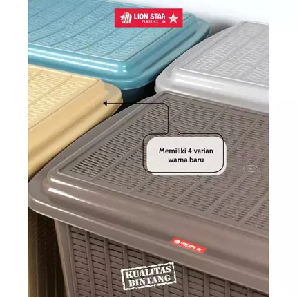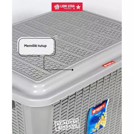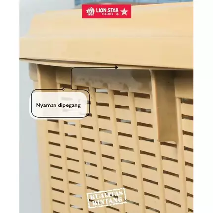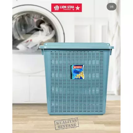 Lionstar Basket Stock Large LB-6 Rectangular Lidded Washing Laundry Basket, Tall Plastic Hamper For Clothes