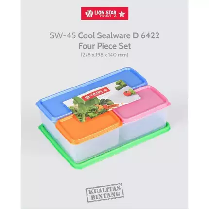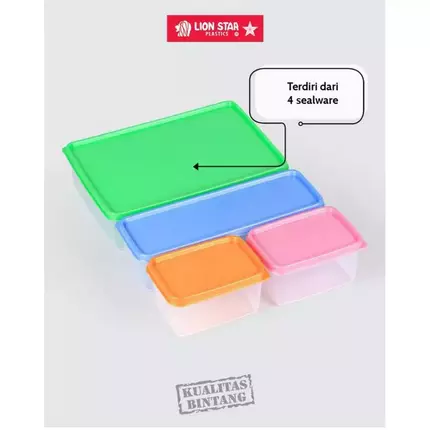 Lionstar Container Cool Sealware 4pc Set Multicolour SW-45 Plastic Rectangle Containers Storage Air Tight Space Saving BPA Free Dim : 278 x 198 x H 140 mm Barcode : 899 9979 01768 8 Material: Crafted from high-quality plastic, our products are built to withstand the demands of everyday use while maintaining their integrity and durability. Safety: Lionstar products are proudly BPA Free, prioritizing your health and well-being. We understand the importance of safe usage, which is why our entire range adheres to strict safety standards. Grade: Our commitment to safety extends to our food-grade materials, ensuring that all Lionstar products are suitable for storing food and beverages without compromising their quality or your health.
