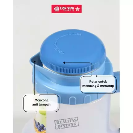 Lionstar Fridge Bottle 2.5L Drink Saloon Cooler DS-2 Lionstar Fridge Bottle 2L Drink Saloon Cooler DS-1 Natural BPA Free Eco Friendly, Reusable Refillable Water Bottles for Juicing & Water DS-2 Drink Saloon Cooler 2.5 Litre Dim:168 x 85 x H 269 mm Barcode:899 9979 00260 8 Material: Lionstar products are expertly crafted from premium-grade plastic, ensuring robustness and longevity. Safety: Lionstar plastic is rigorously tested and certified BPA Free, providing peace of mind for health-conscious consumers. Quality: Lionstar's commitment to maintaining food-grade standards guarantees the utmost safety and purity in every product