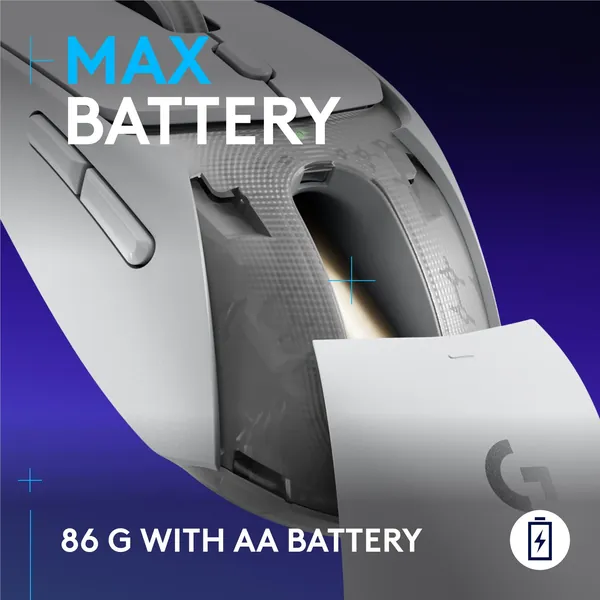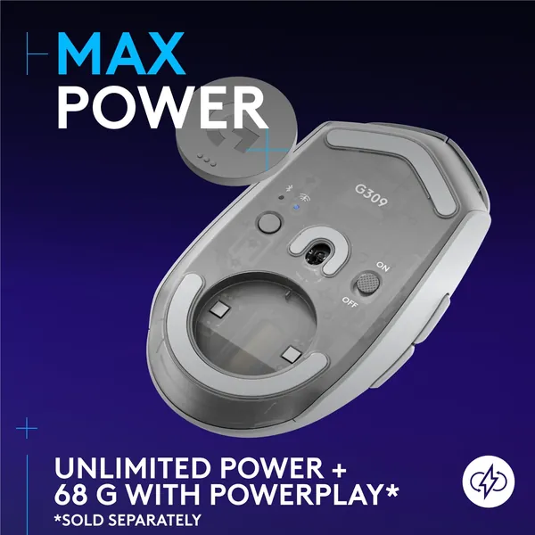 Min Weight: Logitech G309 LIGHTSPEED is a lightweight gaming mouse that weighs just 86 g with the included AA battery or 68 g (battery-free) with use of POWERPLAY wireless charging system