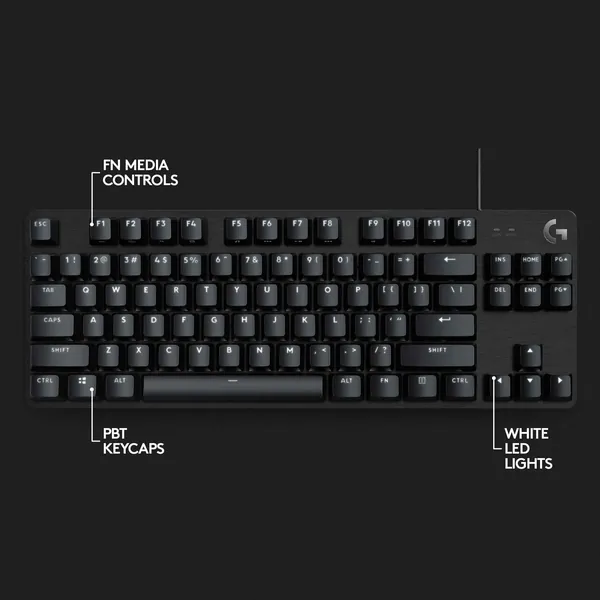 Introducing the Logitech G413 TKL SE Mechanical Gaming Keyboard. The G413 TKL SE delivers a gaming-grade mechanical switch experience. It’s designed to help serious players perform at a higher level and push themselves even further. The G413 TKL SE features tactile mechanical switches; PBT keycaps; robust design; 6-key rollover anti-ghosting; premium materials like a black-brushed aluminium top case and white LED lighting; 12 FN key media controls; and reliable USB-corded technology. A full-size option is also available. All the gaming-first features you need to put better performance within reach. In short, the G413 TKL SE is engineered to perform — a keyboard that’s made for play.