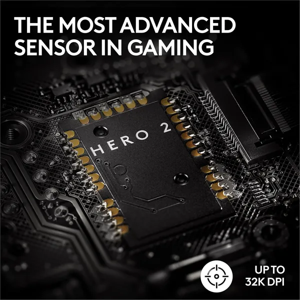 The most advanced optical sensor in gaming; HERO 2 features tracking over 500+ IPS, up to 32,000 DPI, and precise sensor calibration with zero smoothing, acceleration, or fltering