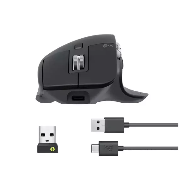 AN ICON. REMASTERED. Meet MX Master 3S – an iconic mouse remastered. Feel every moment of your workflow with even more precision, tactility, and performance, thanks to Quiet Clicks and an 8,000 DPI track-on-glass sensor. Feel it. Barely hear it. Introducing Quiet Clicks – create, make and do with the same click feel, but less noise. Quiet Clicks deliver satisfying, soft tactile feedback with 90% less click noise. Add that to a remarkably quiet MagSpeed electromagnetic scroll wheel for a high performance experience with zero distraction. 8k DPI any-surface tracking MX Master 3S is outfitted with our most accurate sensor ever, with next-gen precision and responsiveness. The 8,000 DPI optical sensor tracks virtually anywhere – even on glass. You can adjust your tracking sensitivity in Logi Options+ and set the right level for your workflow and monitor resolution. Scroll 1,000 lines per second MagSpeed Electromagnetic scrolling is precise enough to stop on a pixel and quick enough to scroll 1,000 lines per second. Oh, and it’s nearly silent. The wheel’s machined steel gives it a premium tactility and enough weight to offer a dynamic inertia you feel – but don’t hear. Do more with Logi Options+ Do more with your mice with Logi Options+. Work across devices and operating systems using Flow, customize individual buttons, set tracking speed, use predefined app-specific customizations and Smart Actions to optimize nearly every aspect of your workflow. App-specific customizations MX Master 3S is fully customizable in virtually every app you use with Logi Options+. You’ll work faster with predefined customizations optimized for your favorite apps such as Adobe Photoshop, Adobe Premiere Pro, Final Cut Pro, Google Chrome, Safari, Zoom, and Microsoft Teams, Word, Excel, PowerPoint, and Edge . Flow between devices Logi Options+ lets you flow between computers by simply moving your cursor to the edge of the screen. Your MX keyboard follows your MX Master 3S and lets your workstream flow between Windows and macOS. Effortlessly transfer text, images, and files between computers – just copy on one and paste to the other. Charge quickly, connect instantly MX Master 3S stays powered for up to 70 days on a full charge – and gets three hours of use from a one-minute quick charge. Use the included USB-C charging cable to top up the power. Hand sculpted, all day comfort Work comfortably with an ergonomic silhouette crafted to support your palm and fingers. Textured surfaces provide a confident grip for total control. The unique tilt angle of MX Master 3S positions your arm in a more natural posture for better comfort. Optimally placed thumb controls are positioned for quick, intuitive access and fast navigation. The side scroll wheel follows the natural movement of the thumb for fluid and intuitive horizontal navigation. Dimensions MX Master 3S Mouse Height: 124.9 mm Width: 84.3 mm Depth: 51 mm Weight: 141 g Logi Bolt USB Receiver Height: 6.11 mm Width: 14.4 mm Depth: 18.65 mm Weight: 1.68 g Technical Specifications Sensor Technology Sensor Technology: Darkfield high precision Nominal value: 1000 DPI DPI range: 200-8000 DPI (adjustable in 50 DPI increments) Buttons 7 buttons (Left/Right-click, Back/Forward, App-Switch, Wheel mode-shift, Middle click) Scroll Wheel: Yes, with smart-shift Thumb wheel: Yes Gesture button: Yes Customization App Supported by Logi Options+ on Windows and macOS Wireless Operating Distance 10 meters Wireless Technology Requires Bluetooth Low Energy Technology Battery Rechargeable Li-Po (500 mAh) battery Get up to three hours of use from just a one-minute quick charge Sustainability Graphite plastics: 27% post-consumer recycled material Pale Gray plastics: 22% post-consumer recycled material Paper Packaging: FSC™-certified System Requirements Compatibility Requires Bluetooth Low Energy Technology Engineered for Intel® Evo™ Laptops Compatible with: Android™ 8.0 or later iPadOS® 14 or later ChromeOS™ Linux® macOS 10.15 or later Windows® 10, 11 or later Not compatible with Logitech Unifying USB Receiver technology Logi Bolt USB Receiver Requires an available USB-A port Compatible with: ChromeOS™ Linux® macOS 10.15 or later Windows® 10, 11 or later Internet access required to download the optional Logi Options customization app