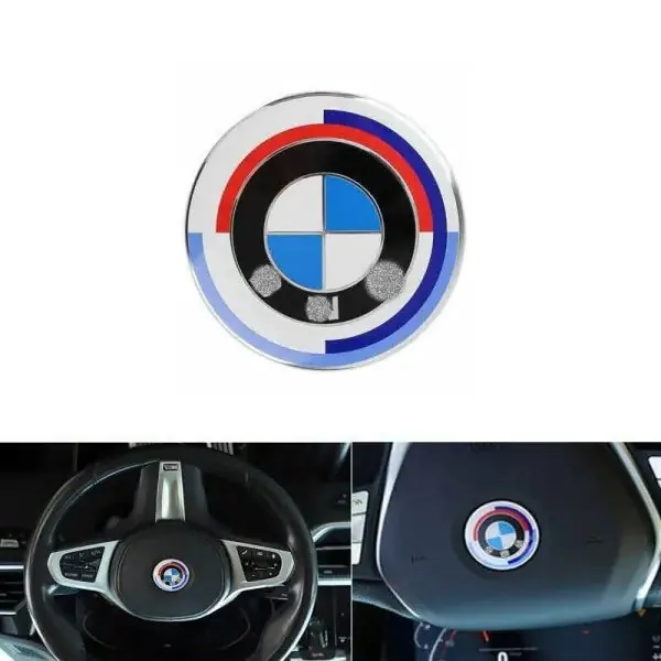 Compatible with BMW 1 2 3 4 5 6 7 Series X1 X3 X4 X5 X6 X7 Z4 Jahre 50th Anniversary Jahre Edition Logo Emblem Badge Steering Logo 45mm Pearl white CC-1974