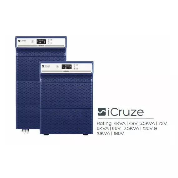Capacity- 4000 VA Real Power- 2850 W No of battery supported- Four batteries (12V each) Technology- Sine Wave technology Advanced LCD display shows inverter and battery performance including battery charging time back-up time percentage load running on the inverter fault indications and many more Powerful charging with smart charge technology that charges the battery faster User can choose either ECO or UPS mode, battery type, capacity and no-load shutdown prevention using the control buttons on the front display MCB for protection from Input mains surge Bypass switch for supplying output directly from grid in case of home inverter fault Protection against short-circuit, battery over-charge, deep discharge etc. Home and commercial establishment have higher power needs.Frequent power cuts can hamper the overall performance of the appliances. Luminous Higher KVA UPS offers high quality and reliable power back-up solution for offices and sensitive equipments. Key features; • Compact design with improved efficiency • In-built TDR handling high inrush current at output load for longer time. • Mains MCB protection • Early bypass the device in case of device fault and allow mains to be available without any wiring changes.