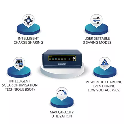 NXG range is a solar inverter range that intelligently uses grid and solar power. With ability to operate in a wide voltage range, NXG is the ideal starter solar solution for homes. ISOT Technology Maximizes solar energy usage in both backup and charging mode of operation. 3 User Settable Saving Modes Solar Mode, Solar+Grid Mode and Grid+Solar Mode. Max Capacity Utilization Connect Solar Panels equivalent to Solar Inverter’s VA ratings. Intelligent Load Sharing Maximizes utilization of solar power and battery power which results in savings of your electricity bills. Powerful Charging on Low Voltage Charges even at 90V making it ideal for areas having low voltage problem. What's in the box? 1N Inverter, 1N Manual Dimensions (in cms): 32.0*30.2*13.0 CM VA Rating: 850VA No. of Batteries Supported: 1 Maximum Panel Capacity (W): 850Wp Nominal Battery bank voltage: 12V Application Area: Commercial Applications, Homes and Small Shops Product Category: Off-Grid Input Voltage Range: 18V-25V Features: 3 User Settable Saving Modes: Solar Mode, Solar+Grid Mode, and Grid+Solar Mode Intelligent Solar Optimization Technology Max Capacity Utilization Intelligent Load Sharing
