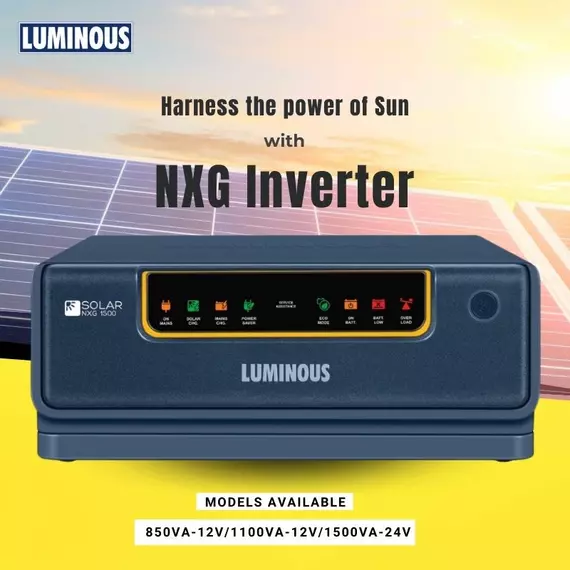 NXG range is a solar inverter range that intelligently uses grid and solar power. With ability to operate in a wide voltage range, NXG is the ideal starter solar solution for homes. ISOT Technology Maximizes solar energy usage in both backup and charging mode of operation. 3 User Settable Saving Modes Solar Mode, Solar+Grid Mode and Grid+Solar Mode. Max Capacity Utilization Connect Solar Panels equivalent to Solar Inverter’s VA ratings. Intelligent Load Sharing Maximizes utilization of solar power and battery power which results in savings of your electricity bills. Powerful Charging on Low Voltage Charges even at 90V making it ideal for areas having low voltage problem. What's in the box?: 1N Inverter, 1N Manual Dimensions (in cms): 32.0*30.2*13.0 CM VA Rating: 500VA No. of Batteries Supported: 1 Maximum Panel Capacity (W): 500Wp Nominal Battery bank voltage: 12V Application Area: Commercial Applications, Homes and Small Shops Product Category: Off-Grid Input Voltage Range: 18V-25V Features: 3 User Settable Saving Modes: Solar Mode, Solar+Grid Mode, and Grid+Solar Mode Intelligent Solar Optimization Technology Max Capacity Utilization Intelligent Load Sharing