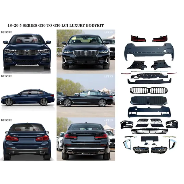 COMPATIBLE WITH BMW 5 SERIES G30 2017-2020 TO G30 F90 LCI 2021+ LUXURY LINE M SPORTS UPGRADE FACELIFT CONVERSION BODYKIT BUMPER TRUNK HEADLIGHT TAILLIGHT