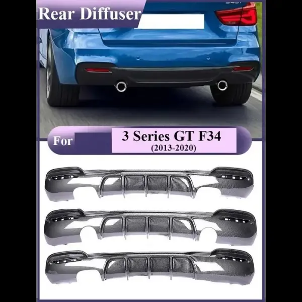 M Performance After Rear Diffuser Bumper Lip Carbon Fiber Mp 0-0 Dual Side Single CC-3202 Compatible With Bmw 3 Series Gt F34 2012-2018