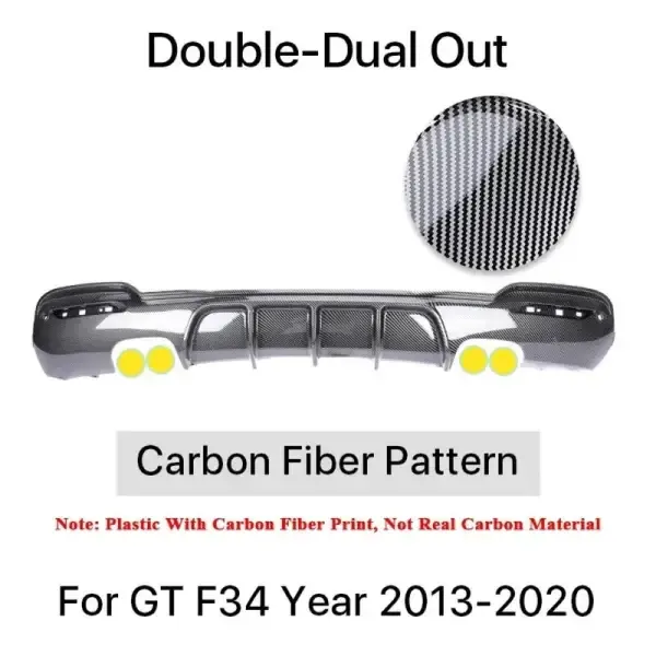 M Performance After Rear Diffuser Bumper Lip Carbon Fiber Mp 00-00 Dual Side Dual CC-3204 Compatible With Bmw 3 Series Gt F34 2012-2018