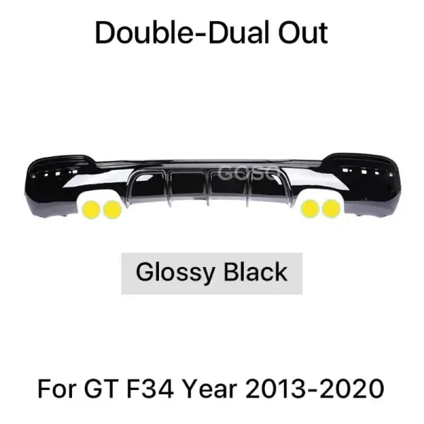 M Performance After Rear Diffuser Bumper Lip Glossy Black Mp 00-00 Dual Side Dual CC-3203 Compatible With Bmw 3 Series Gt F34 2012-2018