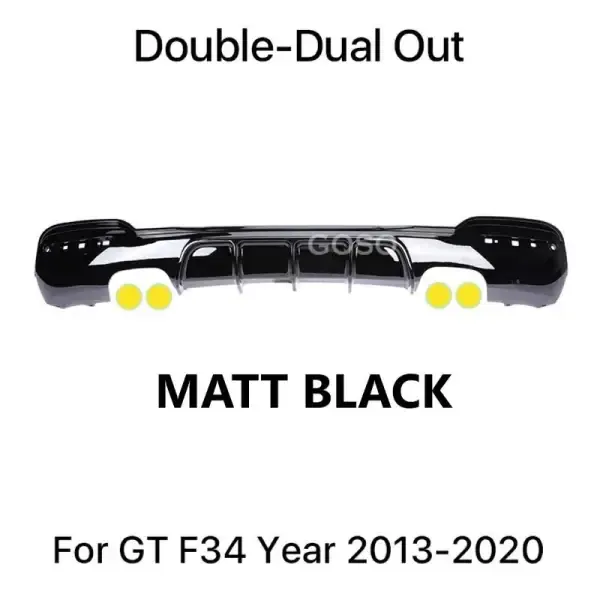 M Performance After Rear Diffuser Bumper Lip Glossy Black Mp 00-00 Dual Side Dual Matt Black CC-3648 Compatible With Bmw 3 Series Gt F34 2012-2018
