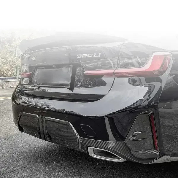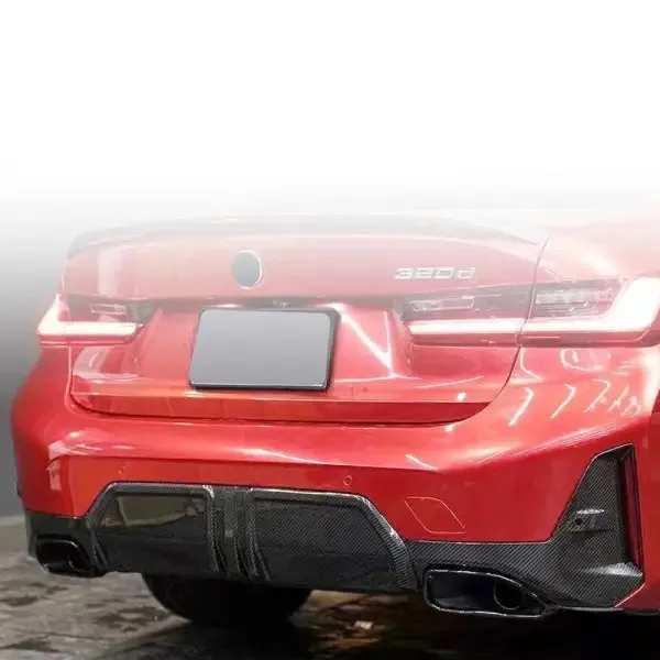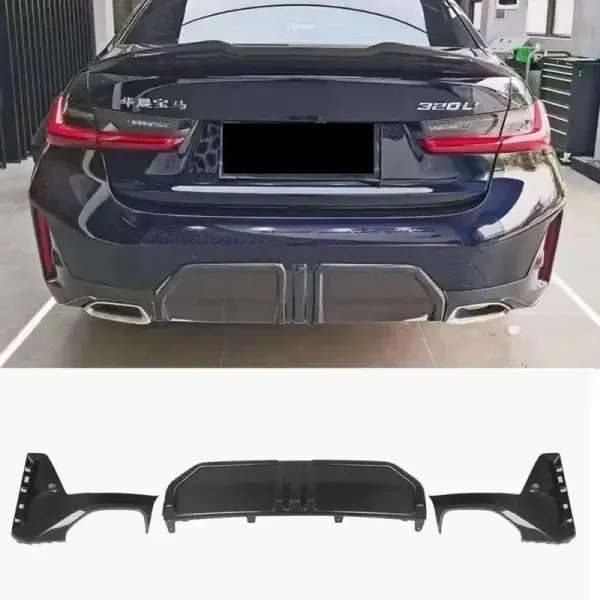 Compatible With Bmw 3 Series Lci 340i G20 G28 2023+ M Performance Mp Rear Bumper After Lip Diffuser Carbon Fiber Looks With Silver Tips