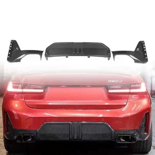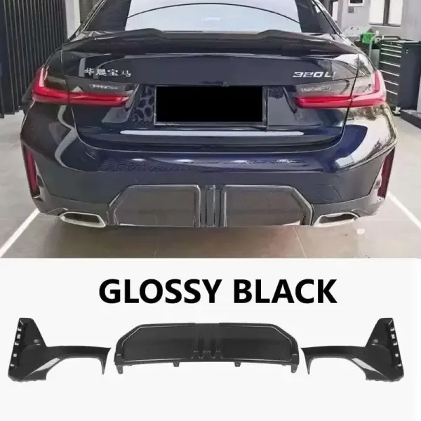 Compatible With Bmw 3 Series Lci 340i G20 G28 2023+ M Performance Mp Rear Bumper After Lip Diffuser Glossy Black With Silver Tips