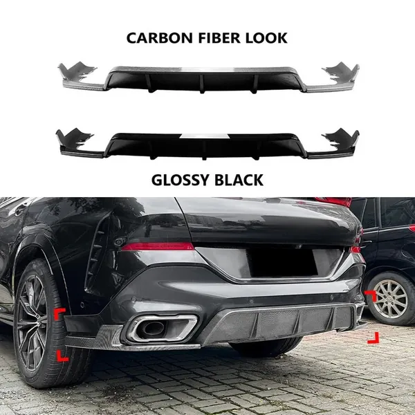 COMPATIBLE WITH BMW X6 G06 2019+ M SPORT REAR BUMPER LIP SKIRT SPLITTER DIFFUSER SPOILER ZST-671 CF CARBON FIBER LOOK