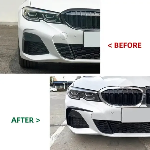 Compatible With Bmw 3 Series G20 2019-2023 Pre-facelift M Sport Front Bumper Flag Splitetr Skirts Canards Zst-400 Glossy Black