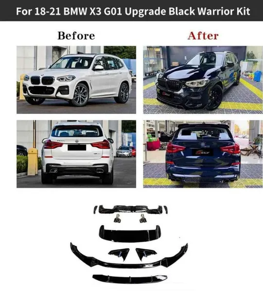 COMPATIBLE WITH BMW X3 G01 2018-2021 M SPORT MP M PERFORMANCE BUMPER UPGRADE CONVERT TO M SPORT X3M AERO BLACK SAMURAI BODYKIT DIFFUSER EXHAUST TIP PIPE G01/08-015 GC