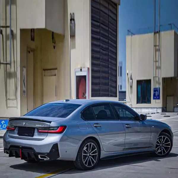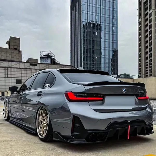 Compatible With Bmw 3 Series G20 G28 Lci 2023+ M Sport Rear After Bumper Lip Splitter Skirts With Led Light Diffuser With Exhaust Pipe Tip Carbon Fiber Look