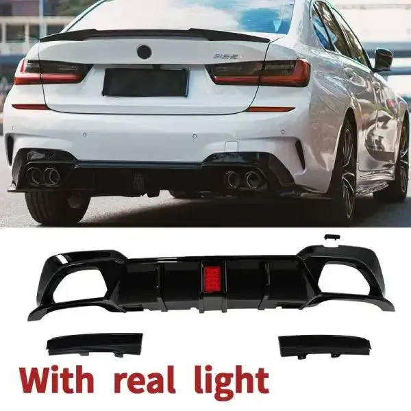 F1 Rear Diffuser After Lip Spoiler Compatible With Bmw 3 Series G20 2018-2022 F1 Rear Diffuser After Lip Spoiler With Light For M Performance Bumper Glossy Black