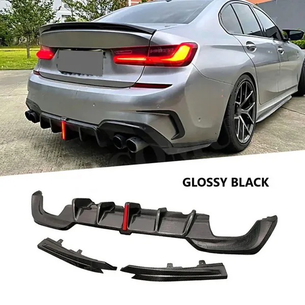 M Sport Rear Bumper Diffuser After Lip Splitter Skirts Vten Style With Light Black CC-6375 Compatible With BMW 3 Series G20 2019-2022