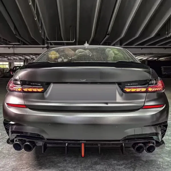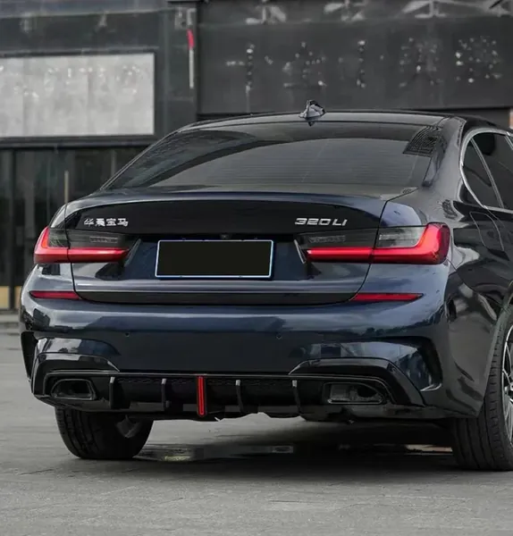 M Sport Rear Bumper Diffuser After Lip Splitter Skirts Vten Style With Light Carbon Fiber Look CC-6376 Compatible With BMW 3 Series G20 2019-2022