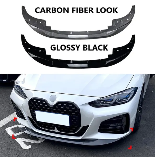 COMPATIBLE WITH BMW 4 SEIRES G22 M4 2020+ M SPORTS BUMPER FRONT LIP SPLITTER SKIRTS FLAG CARBON FIBER LOOK ZST-376 CF USA