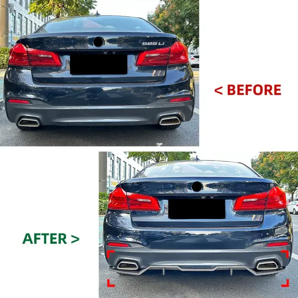 M Sports Bumper Rear After Lip Diffuser Splitter Skirts Blade Style Carbon Fiber Look Zst-883 Cf CC-6054-11 Compatible With Bmw 5 Series G30 2017-2021