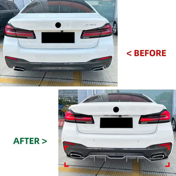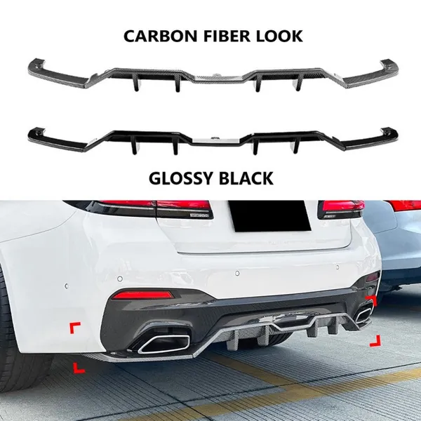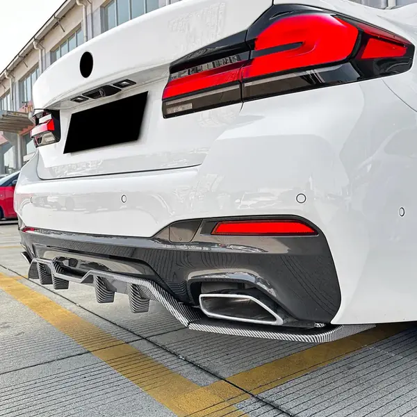 M Sports Bumper Rear After Lip Diffuser Splitter Skirts Blade Style Carbon Fiber Look Zst-884 Cf CC-6054-13 Compatible With Bmw 5 Series G30 Lci 2021-2023