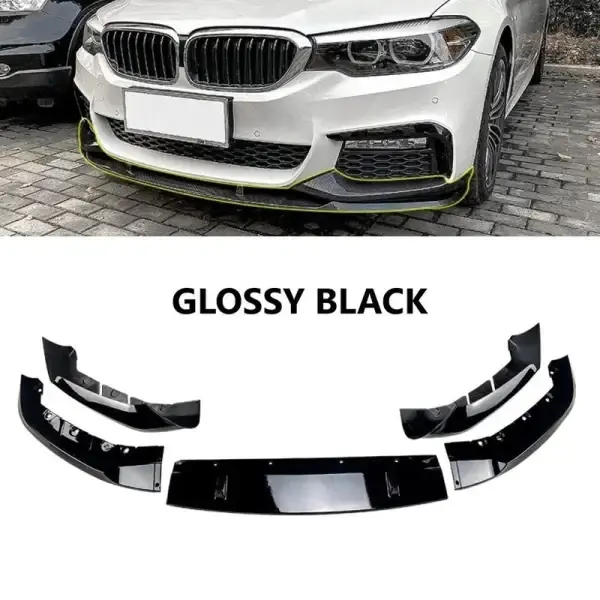 Compatible With Bmw 5 Series G30 2017-2021 M Sports M5 M Tech M Sports Front Bumper Lip Splitter Skirts Flag Zst-390+zst-392 Glossy Black