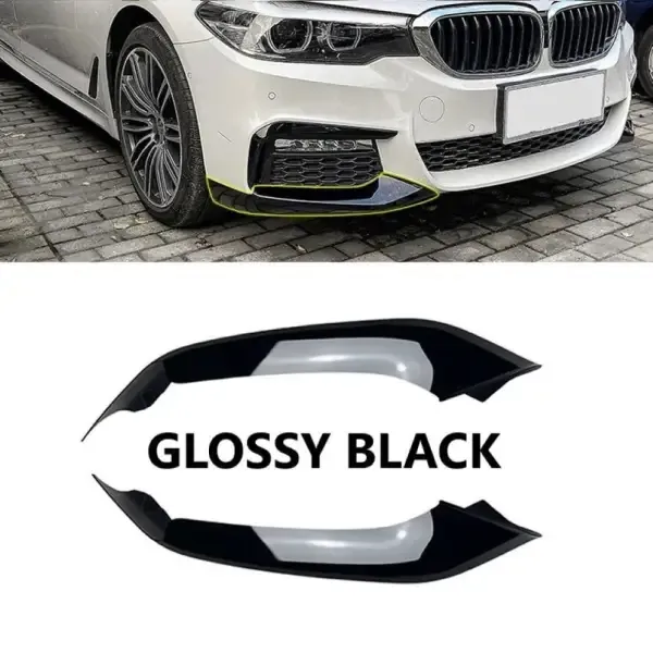 Compatible With Bmw 5 Series G30 2017-2021 M Sports M5 M Tech M Sports Front Bumper Lip Splitter Skirts Flag Zst-392 Gb Glossy Black