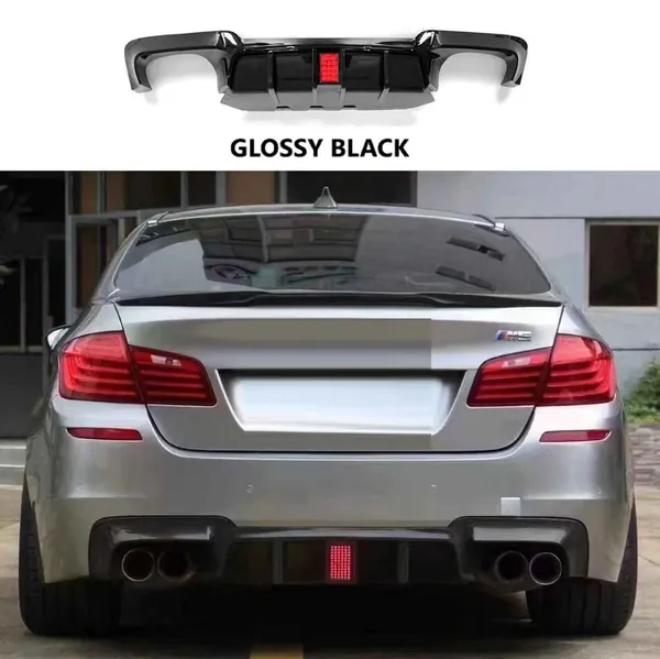 M Sports Rear Bumper After Lip Diffuser Splitter F10 Style With Led Light Glossy Black CC-8651 Compatible With BMW 5 Series F10 2010-2017 M5