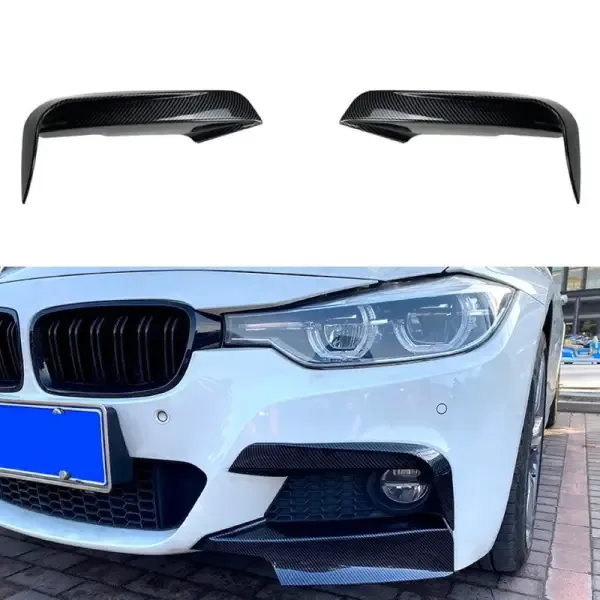 Compatible With Bmw 3 Series F30 2012-2018 M Tech Front Bumper Lip Splitter Spoiler Flag Skirts Zst-325 Cf Carbon Fiber Look